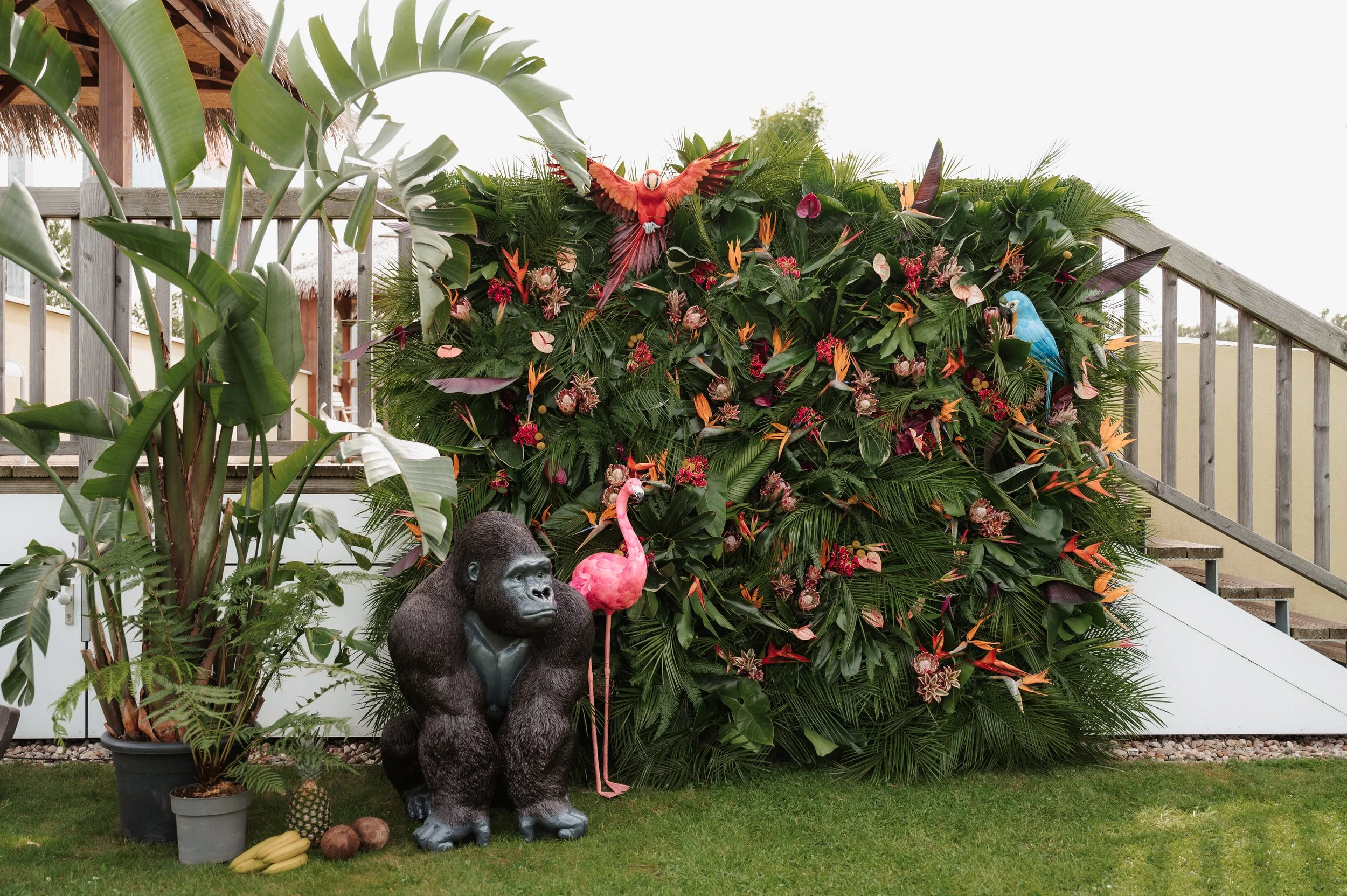Location: Tropical Island | Kunde: Oliver Wymans GmbH | Mitarbeiterevent | Blumenwand/Fotowand 250x250cm & Tischdeko & Pflanzendeko für den Garten