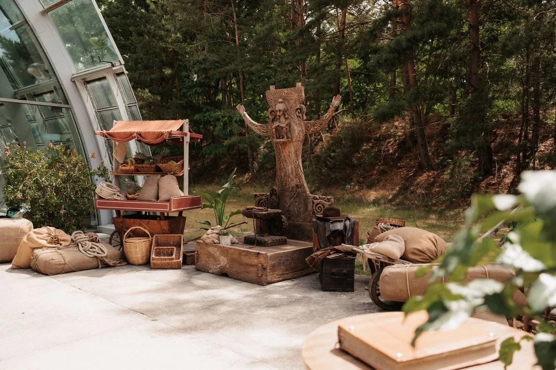 Lösung: Tropisches Setdesign mit Requisiten-Details, Layering & Green Props.